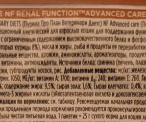 - В корме Ренал очень желательно наличие следующих ингредиентов: омега-3 жирных кислот, пребиотиков, пробиотиков, клетчатки.