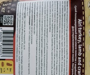 Источниками животного белка в корме выступают дегидрированное мясо индейки 33% и свежее мясо ягненка 10%. Далее по составу нет богатых растительным белком ингредиентов, поэтому можно быть уверенными, что основная часть из указанных в анализе 29% протеина — животного происхождения.