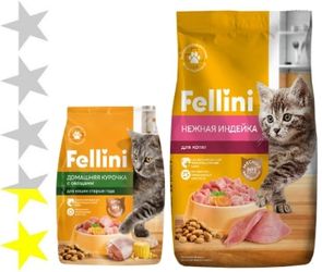 Про корм для кошек Fellini отзывы имеются как положительные, так и отрицательные. Данные корма сайт «ПетОбзор» не может рекомендовать в качестве основного рациона питания для ваших котов и кошек. Корма для взрослых можно попробовать давать животным с лишним весом, но обязательно в сочетании с влажными кормами, иначе есть риск развития мкб. Корм для котят не советуем.