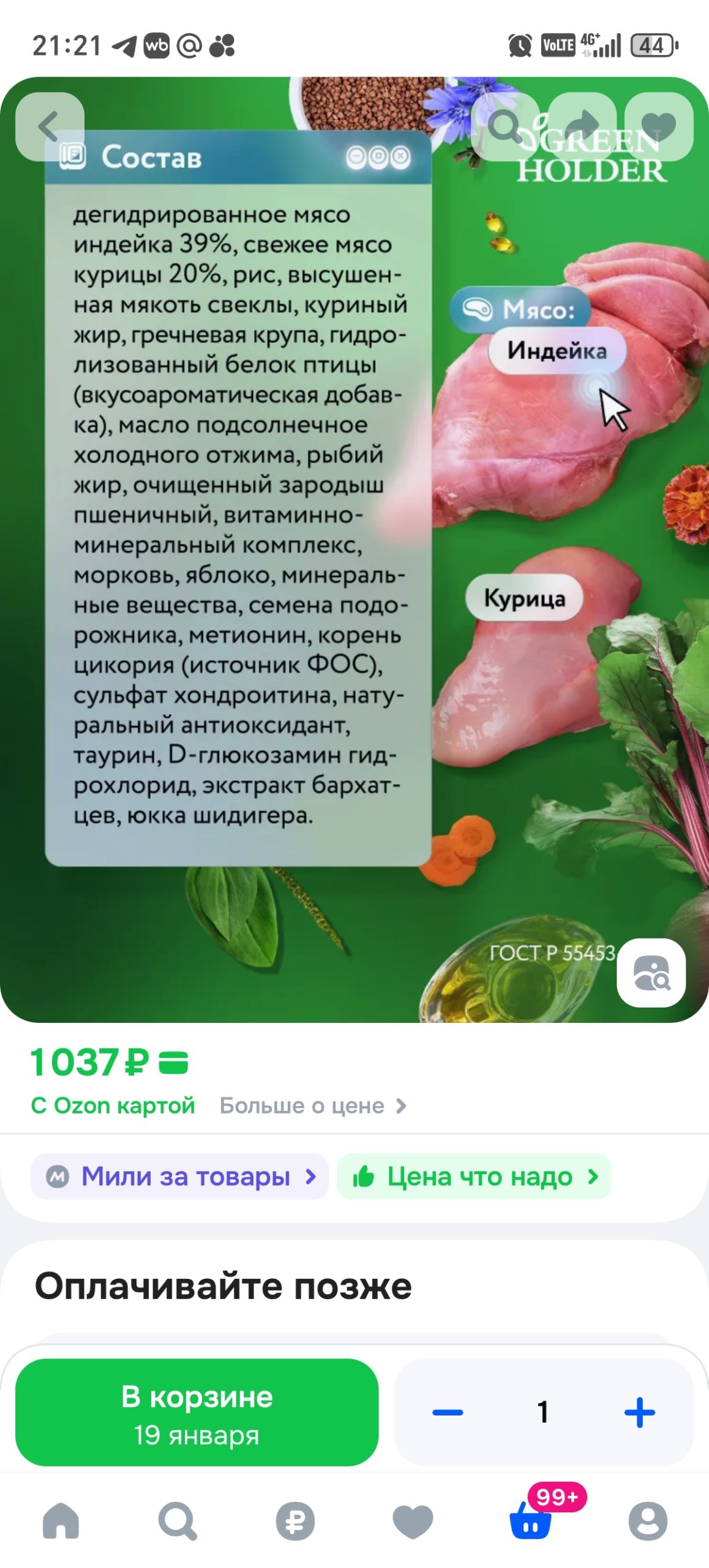 - Сухой корм «Green Holder» 1,5 кг — от 1050 руб.;