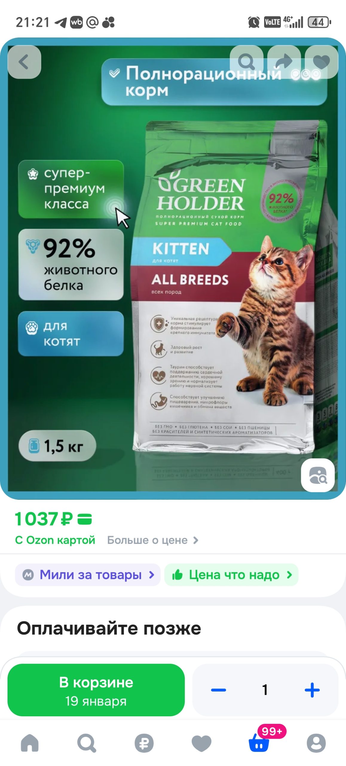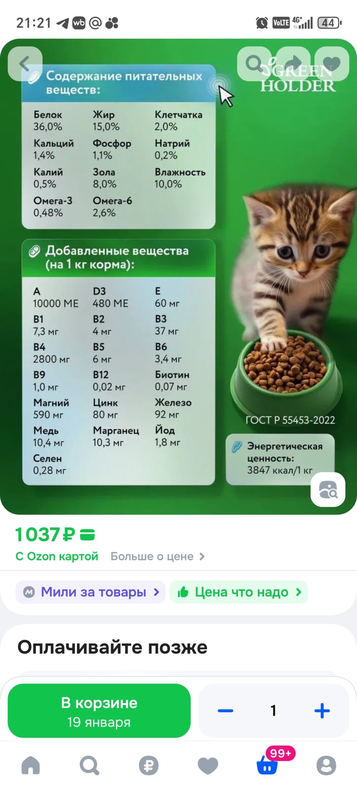 Корм Green Holder для кошек купить можно в интернет-магазинах, например: