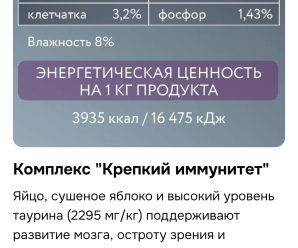 Минералы (кальций и фосфор) во всех кормах данной линейки прекрасные.