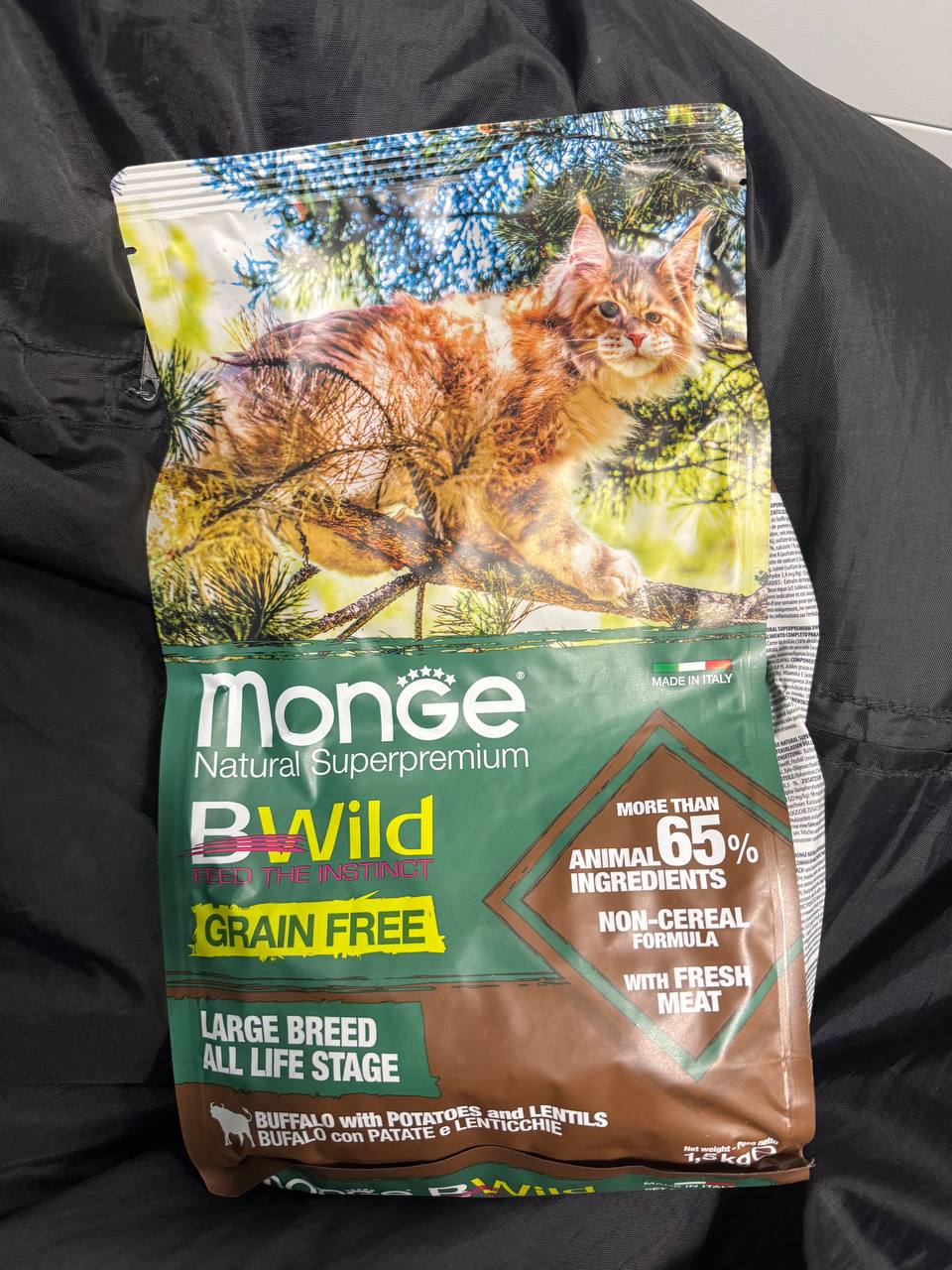Покупаю Monge BWild с анчоусом, и мясной тоже. Экономный объем, коту нравится, пониженное количество злаков, отсутствие картофеля — то, что надо для здоровья домашнего любимца. Кот признал этот корм. Советую покупать сначала маленький объем, чтоб питомец привык к такому виду корма.