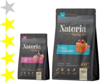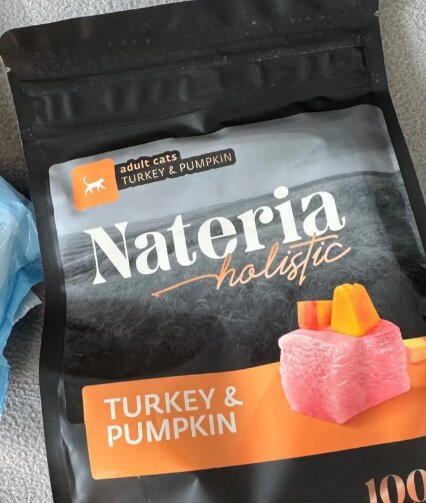 Сухие корма Nateria для кошек производятся в России на заводе ООО «СКЗ» (г. Саратов). Официальный сайт — https://www.nateria.ru/, там присутствует информация о составах всей линейки кормов, нормы кормления не указаны. Данный корм можно отнести к супер премиум классу.