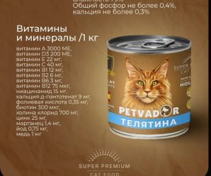 Здравствуйте. Сухой Петвадор можно оставить. Влажный точно убрать, в нем фосфора больше, чем кальция, а должно быть наоборот. Варианты влажного корма для котят: воздушный паштет от Brit, Brit Premium паучи, консервы и паучи Award, Jarvi в ламистерах, Blitz Sensitive для котят, Enso, Leo&Lucy, Karmy, Royal Canin, Pro Plan.