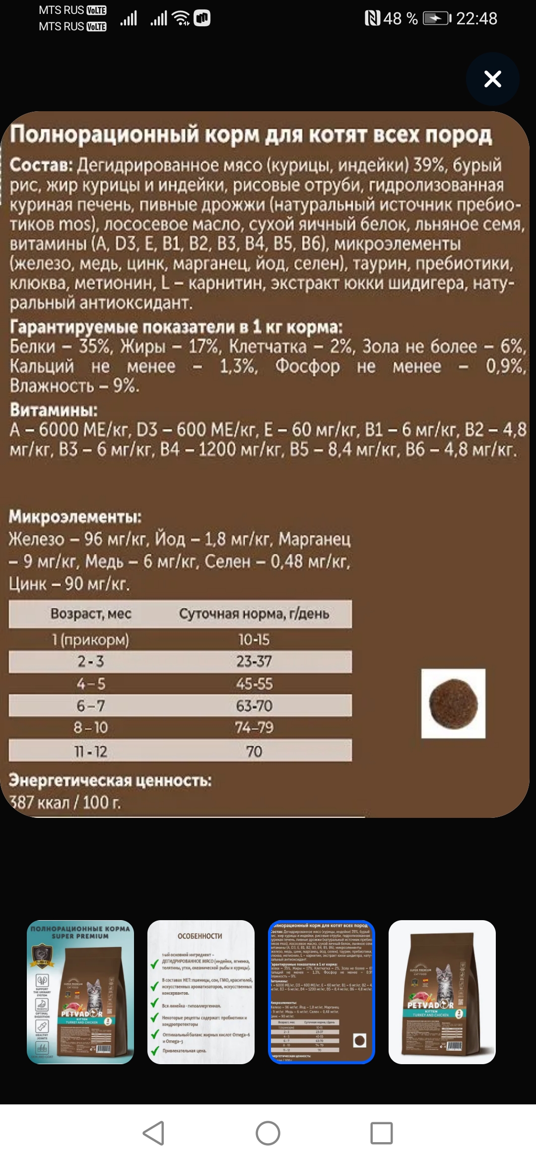 Корм едим с октября, пока еще для котят. Перешли с РК, сразу стал есть с удовольствием. Одно время отрыжка появилась, думала с корма, перевела на Градорф, но отрыжка сохранилась, оказалось от шерсти в желудке, после смальт пасты прошло. Но от Грандорфа стал глазик пачкаться один т шерсть сильнее вылезать, снова вернулись на Савиту, глазик снова чистый.