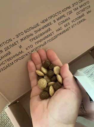 Этот корм стал настоящим открытием для моего питомца! Пришел в стильной коробке, внутри прекрасные слова. Видно, что делается с заботой и любовью. Изучив состав также можно сделать вывод, что используются натуральные компоненты, запах приятный натуральный мясной, нет примеси химии или не понятно чего. Мы начали подмешивать его в старый, плавно переходя. Но волшебство, у моего пса всегда при введение нового корма начинались проблемы с жкт и шерстью уже на моменте смешивания, здесь нет. Я очень довольна что нашла этот корм и однозначно рекомендую его всем владельцам собак. У меня индейка для средних и крупных пород.