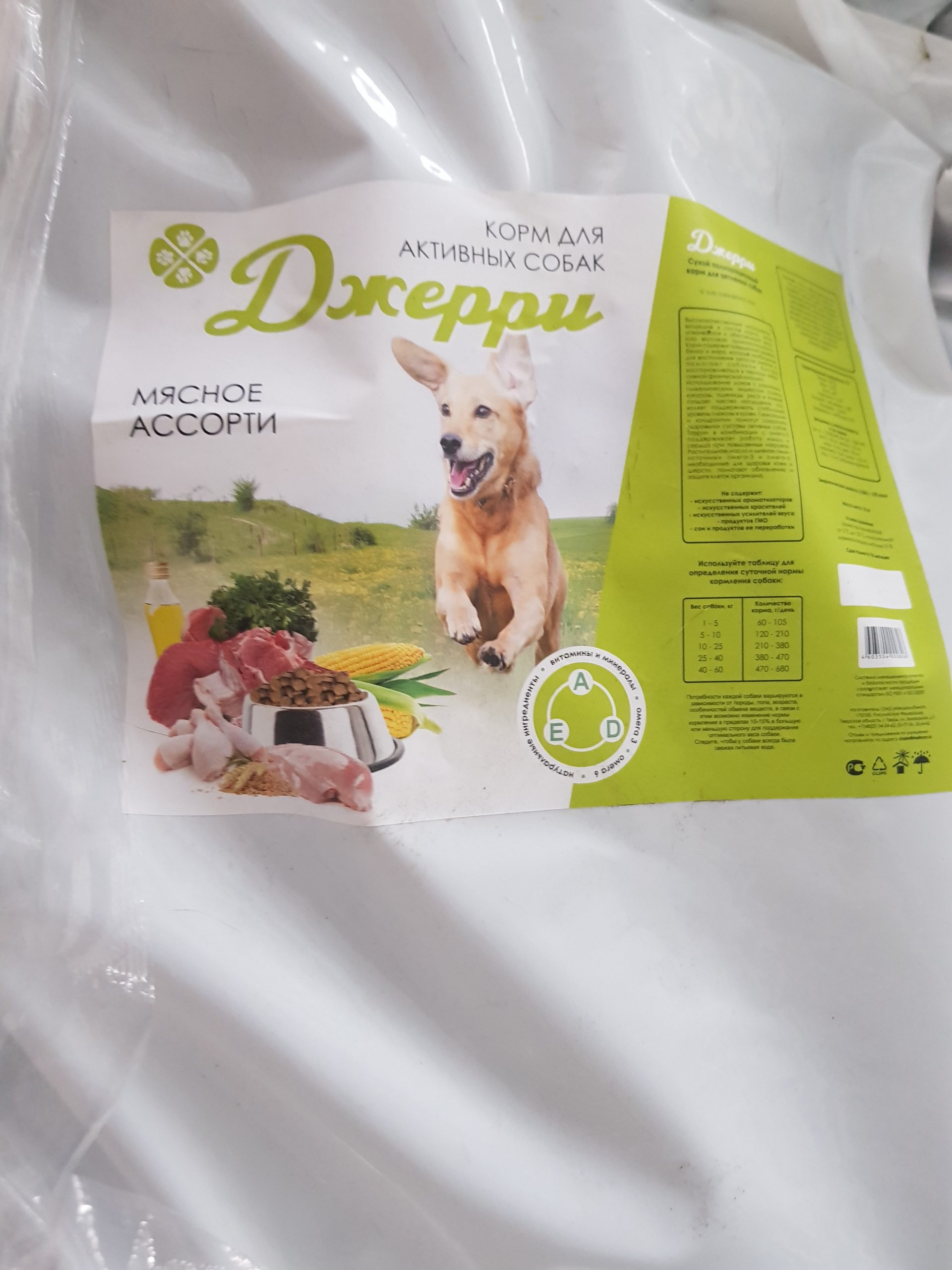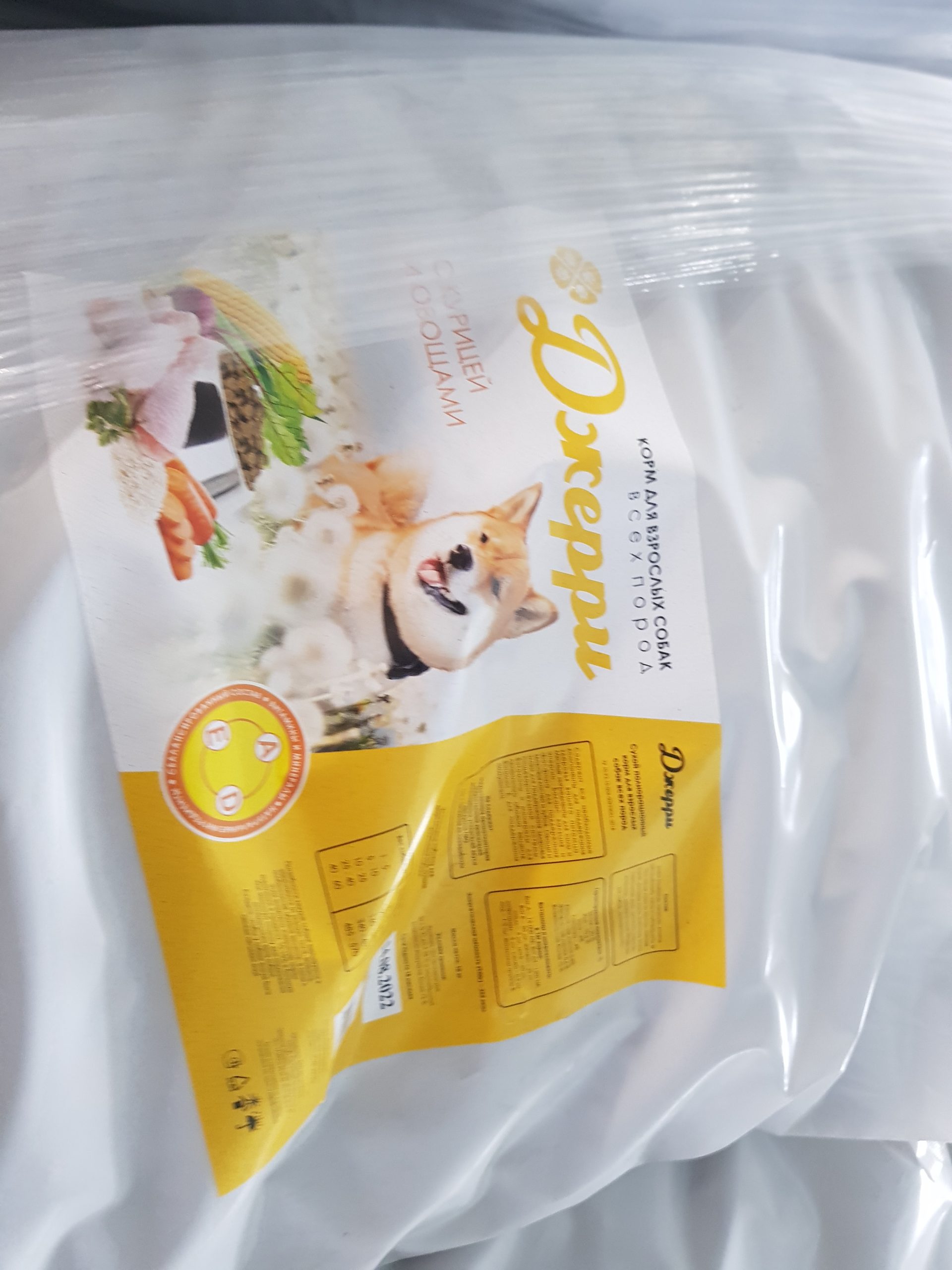 Упаковка впечатлила, в три слоя. Мешок напоминает ткань плащевку, надеюсь это будет спасать корм от повреждений при транспортировке! Взяли на пробу один мешок, из 8 собак никто от корма не отвернулся, чихуахуа, метис маленький, шпиц и 5 лабрадоров ели с аппетитом. Гранулы похожи на корм Карми. Чтобы понять есть ли аллергия, нужно покормить 3-4 мешка, поэтому будем надеяться, что корм подойдет! Поэтому пока кормим и наблюдаем!