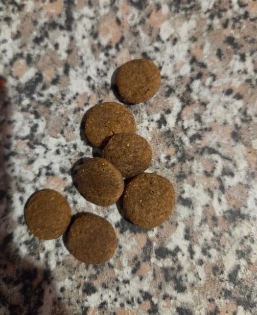 На упаковке данного корма имеются некоторые неточности. Содержание белка (29%), жира (14%), влажности, клетчатки, золы, кальция и фосфора — это показатели не на 1 кг корма, а на 100 г корма, а вот далее идет витаминно-минеральная добавка на 1 кг. Печально, что встречается такая путаница.