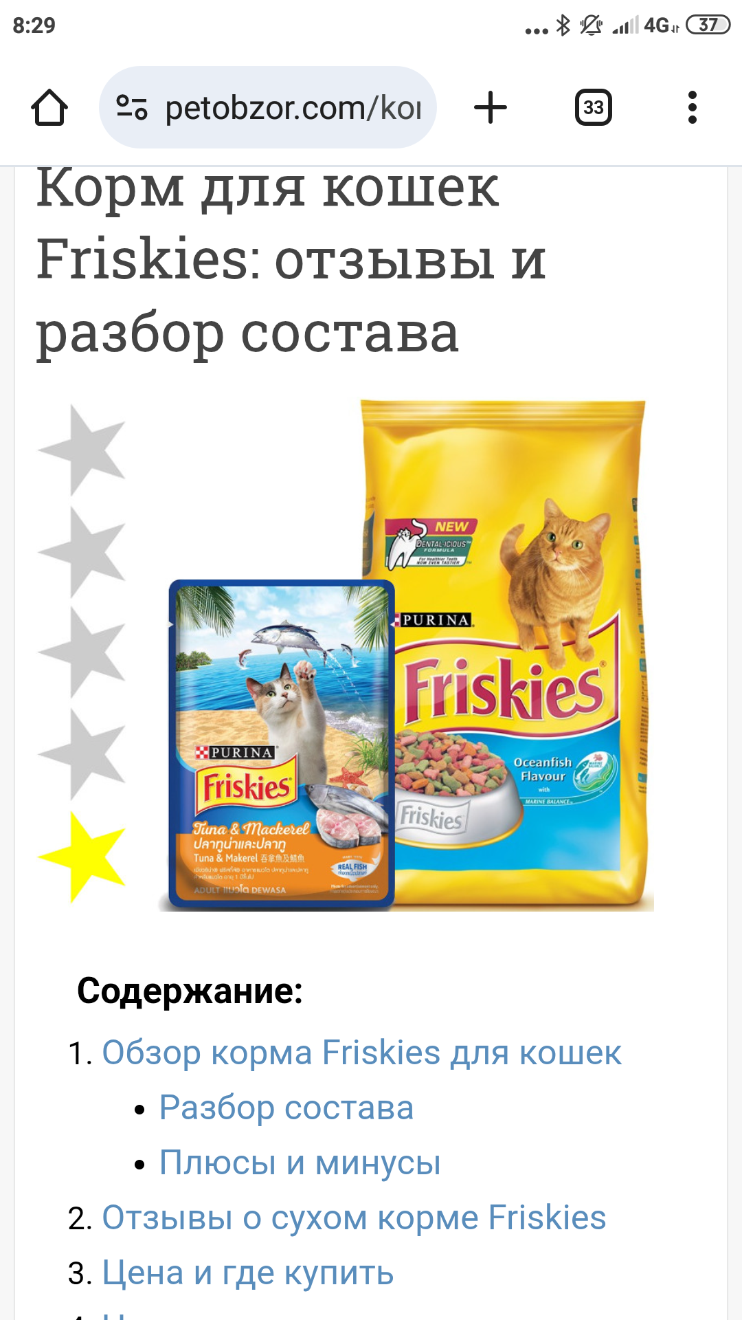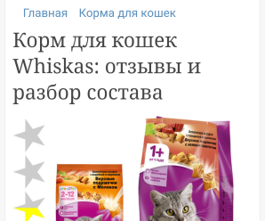 Как можно доверять обзорам с этого сайта. Фрискас в начале списка, а Вискас в конце? При этом в отдельном обзоре на Вискас 2,5 звёзды, а на фрискас одна звезда. Скрины прилагаю: