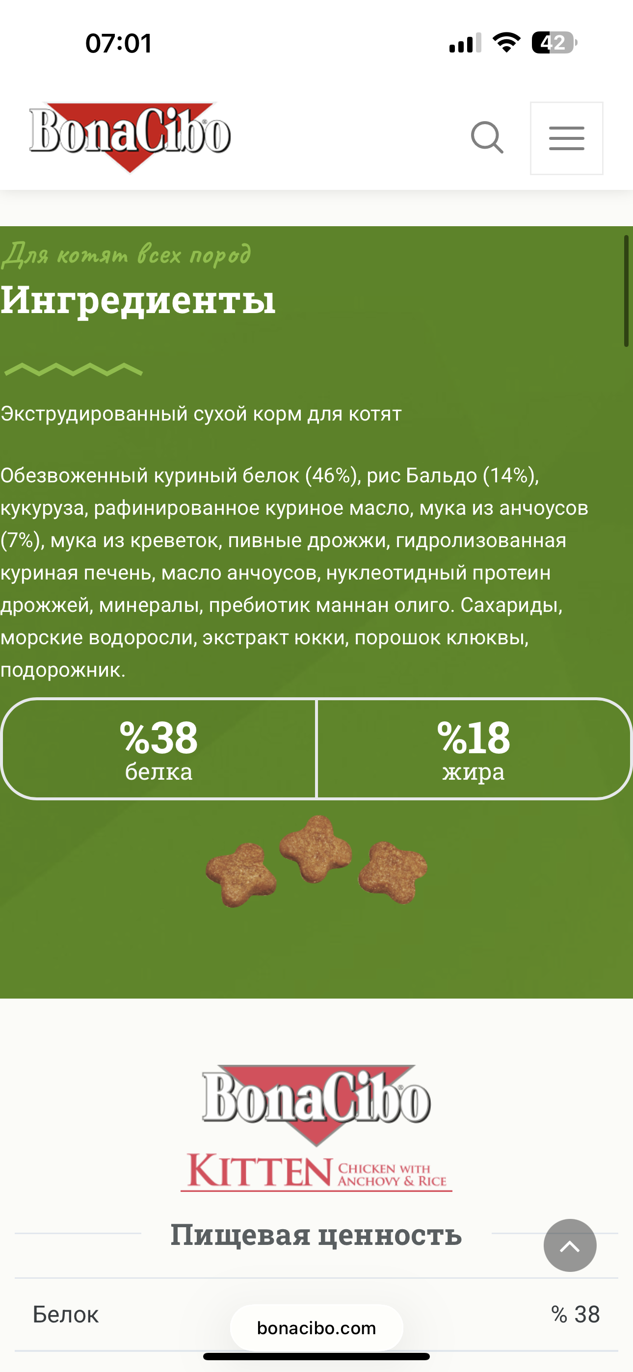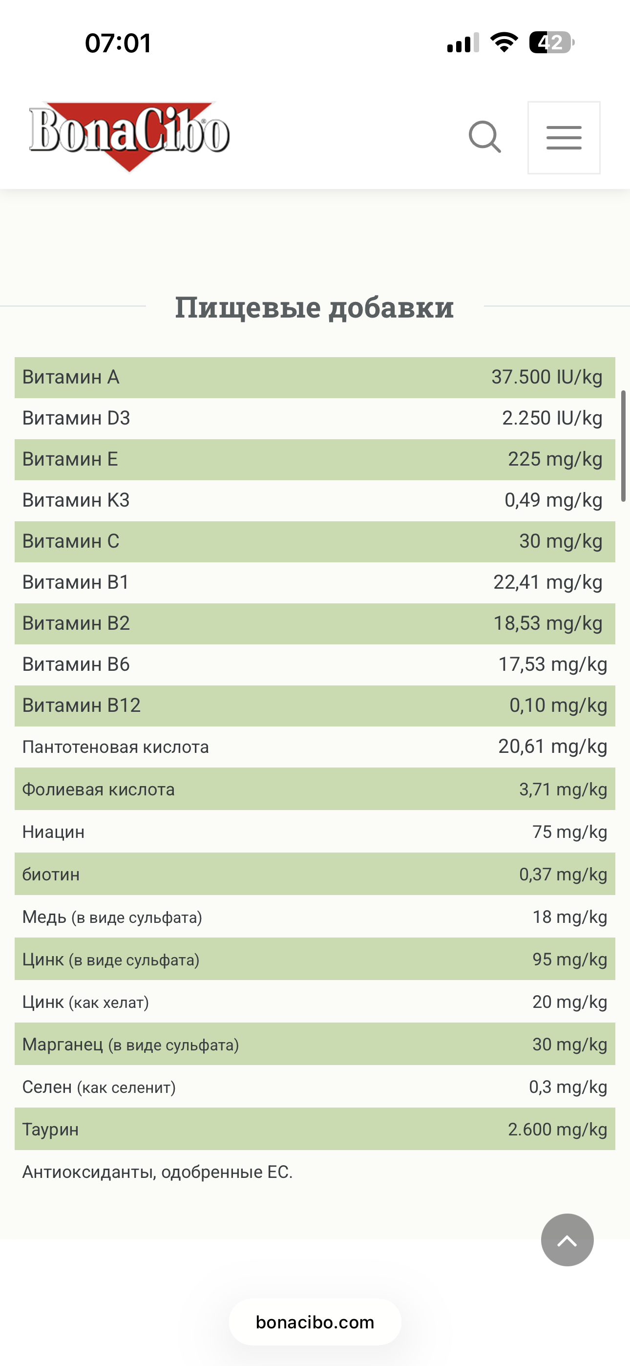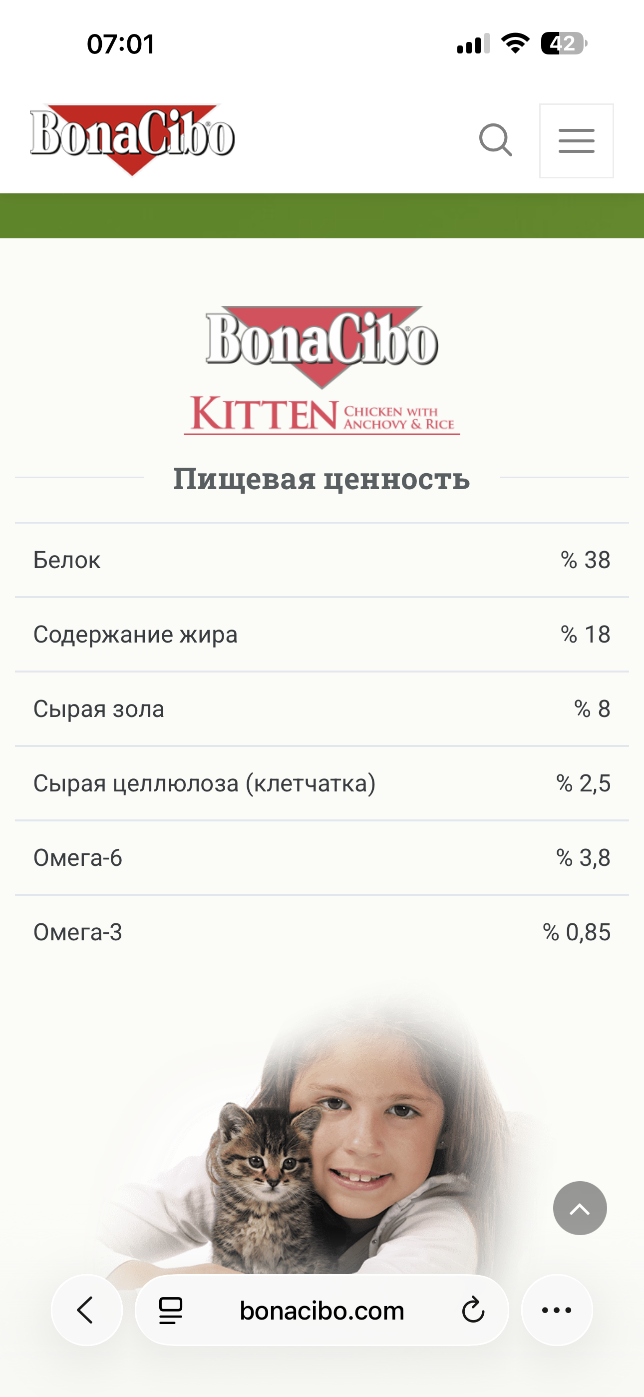 Ниже я прикрепила скрины состава и минералов корма для котят bona cibo с сайта, посмотрите пожалуйста, насколько хороший?