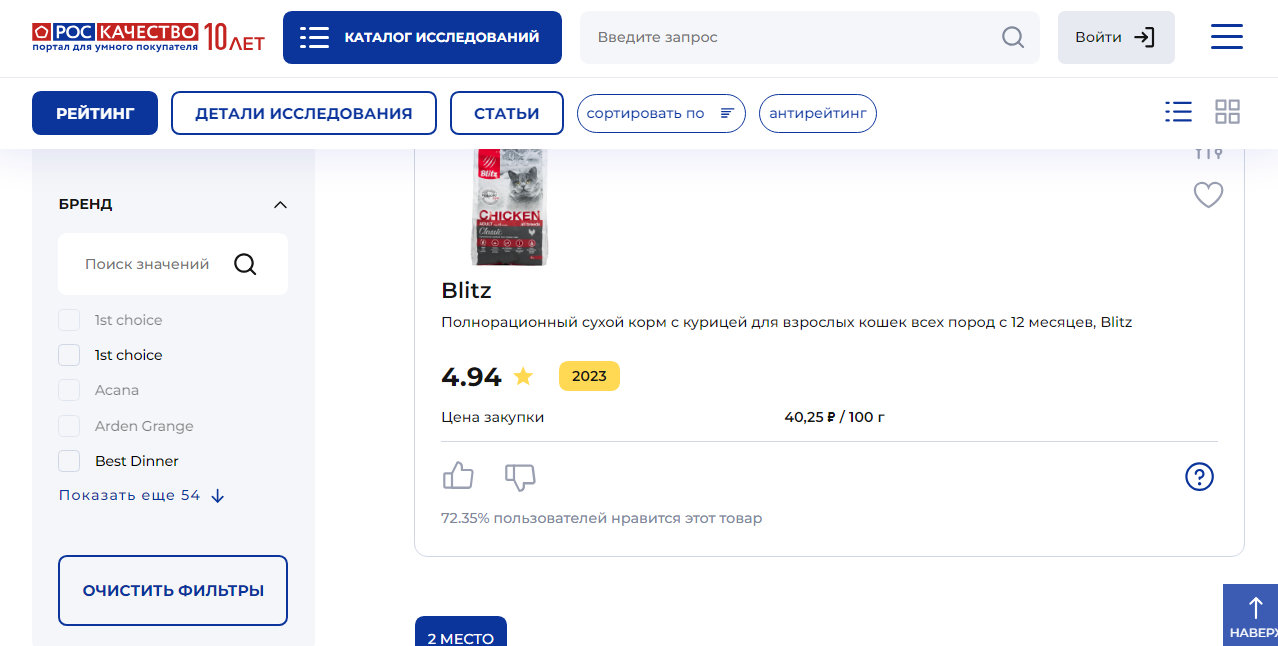 Рейтинг супер премиум кормов для кошек «по качеству состава»: